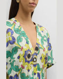 Indulge in luxury with Mes Demoiselles' Champagne Dress. Crafted from soft cotton, this feminine and sophisticated dress features a full skirt that falls at a flattering midi length, contrasted by short sleeves. The bold mosaic print adds an exclusive touch to this tasteful and elegant piece.